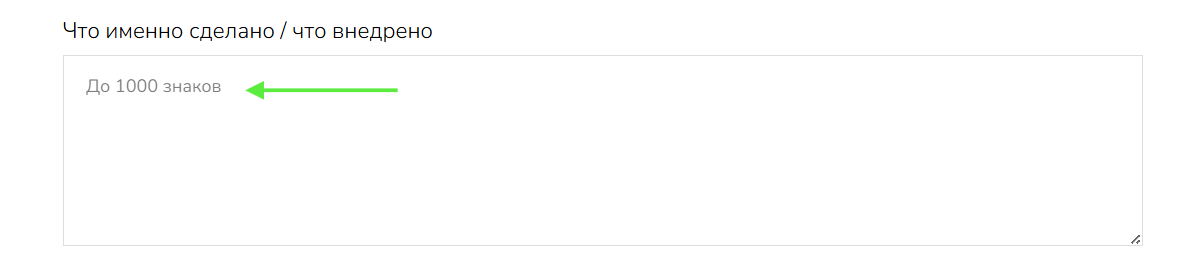 «Сгенерируй текст для поля "Что именно сделано / что внедрено" (до 1000 знаков с пробелами). Опиши конкретные действия и внедренные элементы проекта, которые напрямую отвечают на сформулированную проблему.